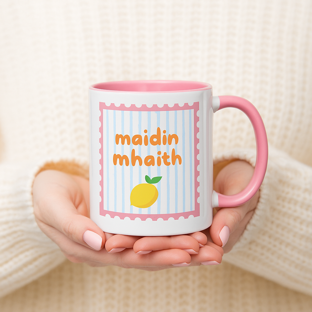 - Design: Cute lemon + stripes + "maidin mhaith" in a stamp-style layout