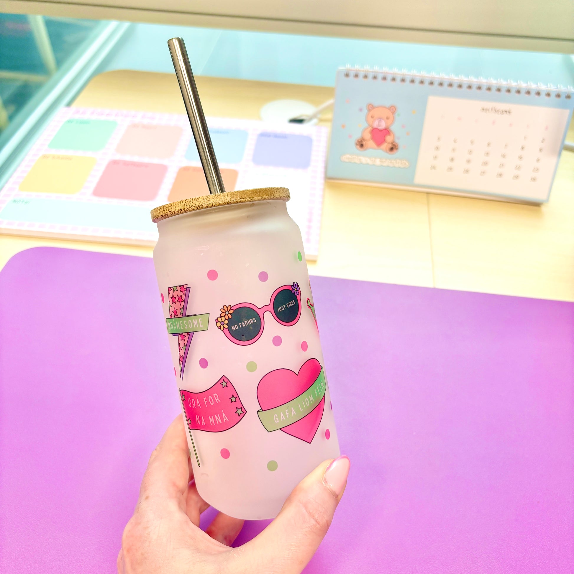Enjoy your iced coffee or refreshing summer drinks in the gorgeous mnáwesome frosted tumbler. Sublimated with our super popular mnáwesome designs this frosted glass tumbler is a perfect cute summer accessory.