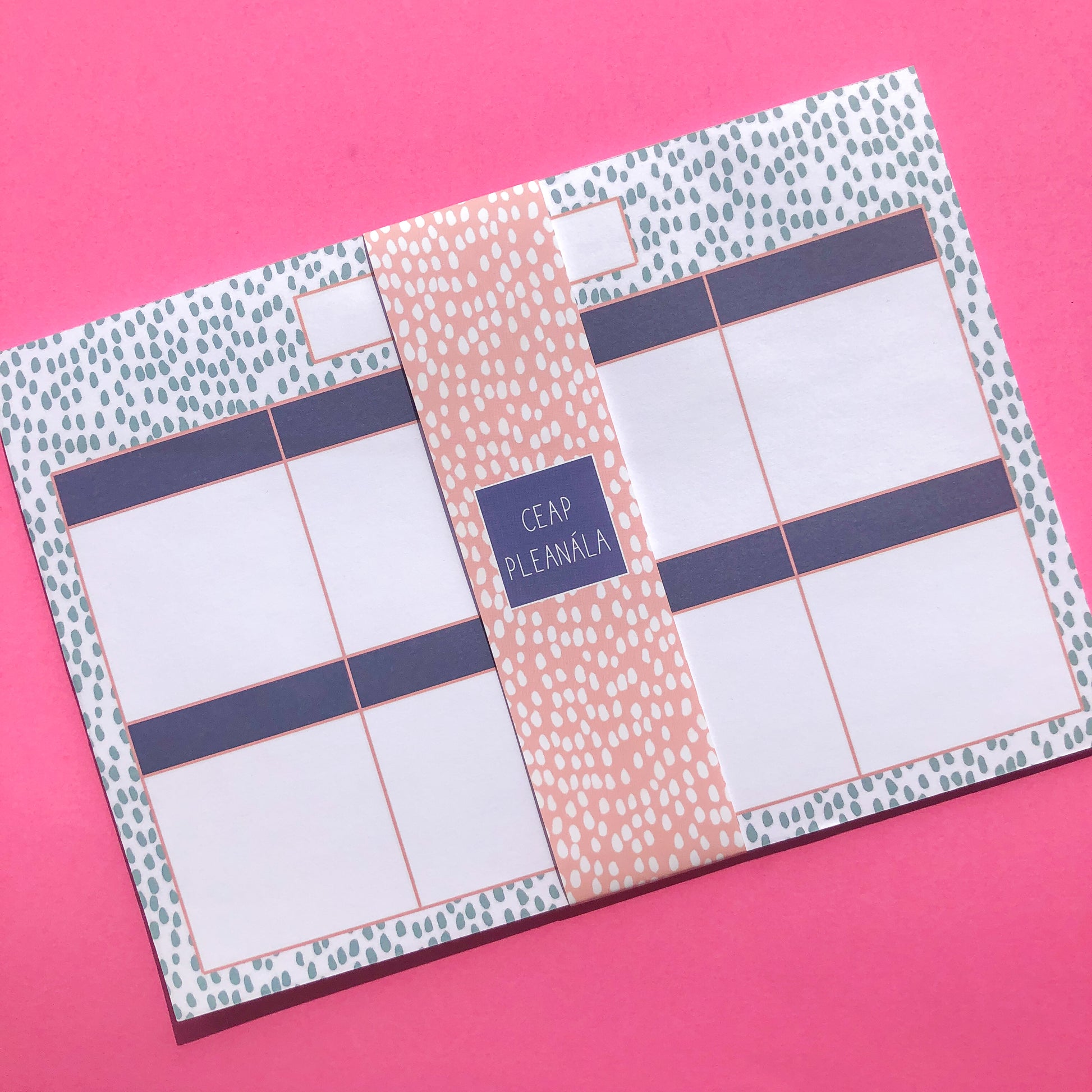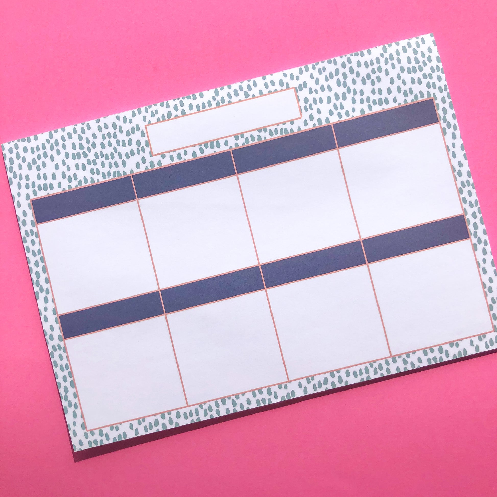 A pretty planning pad. Blank to allow you to use it in a whole number of ways - plan your week, day, meals, lessons etc. The possibilities are endless.