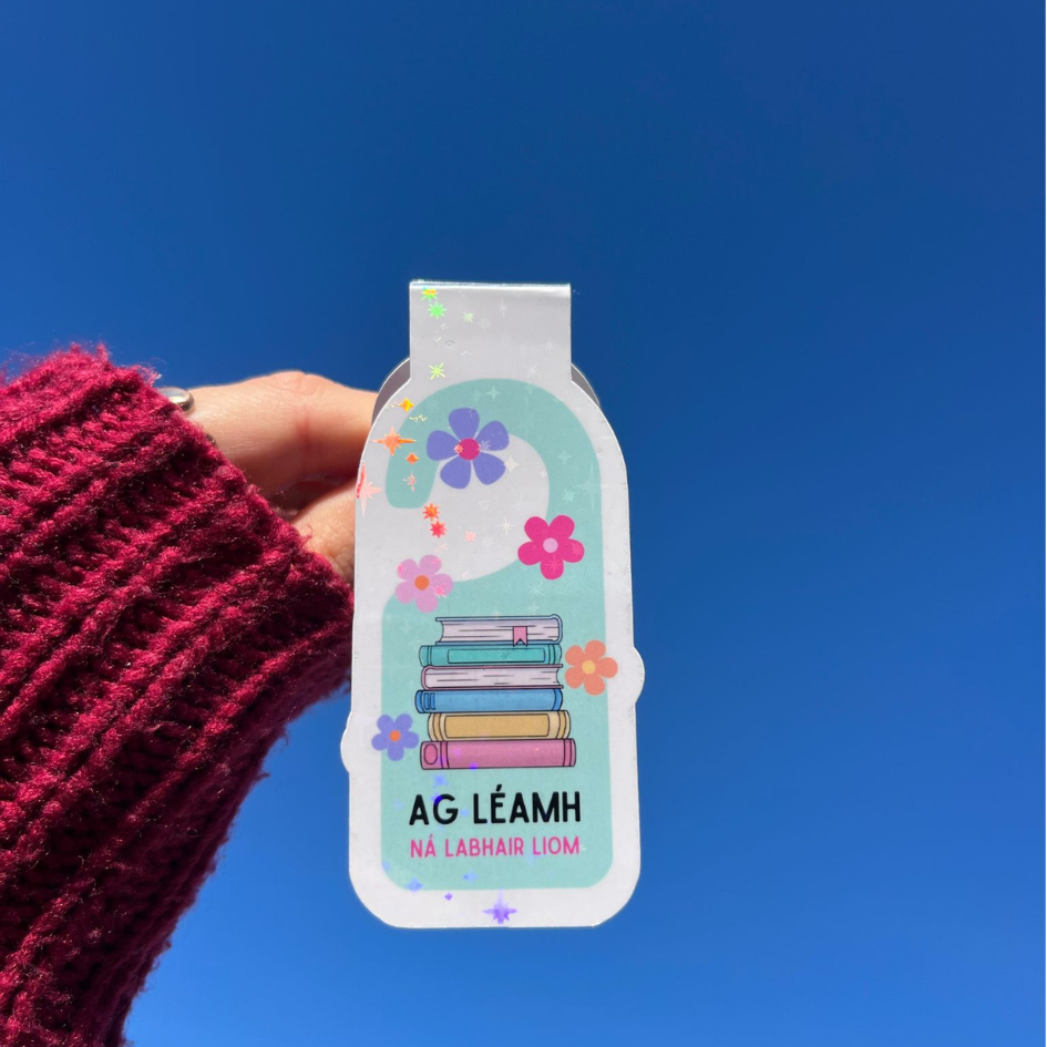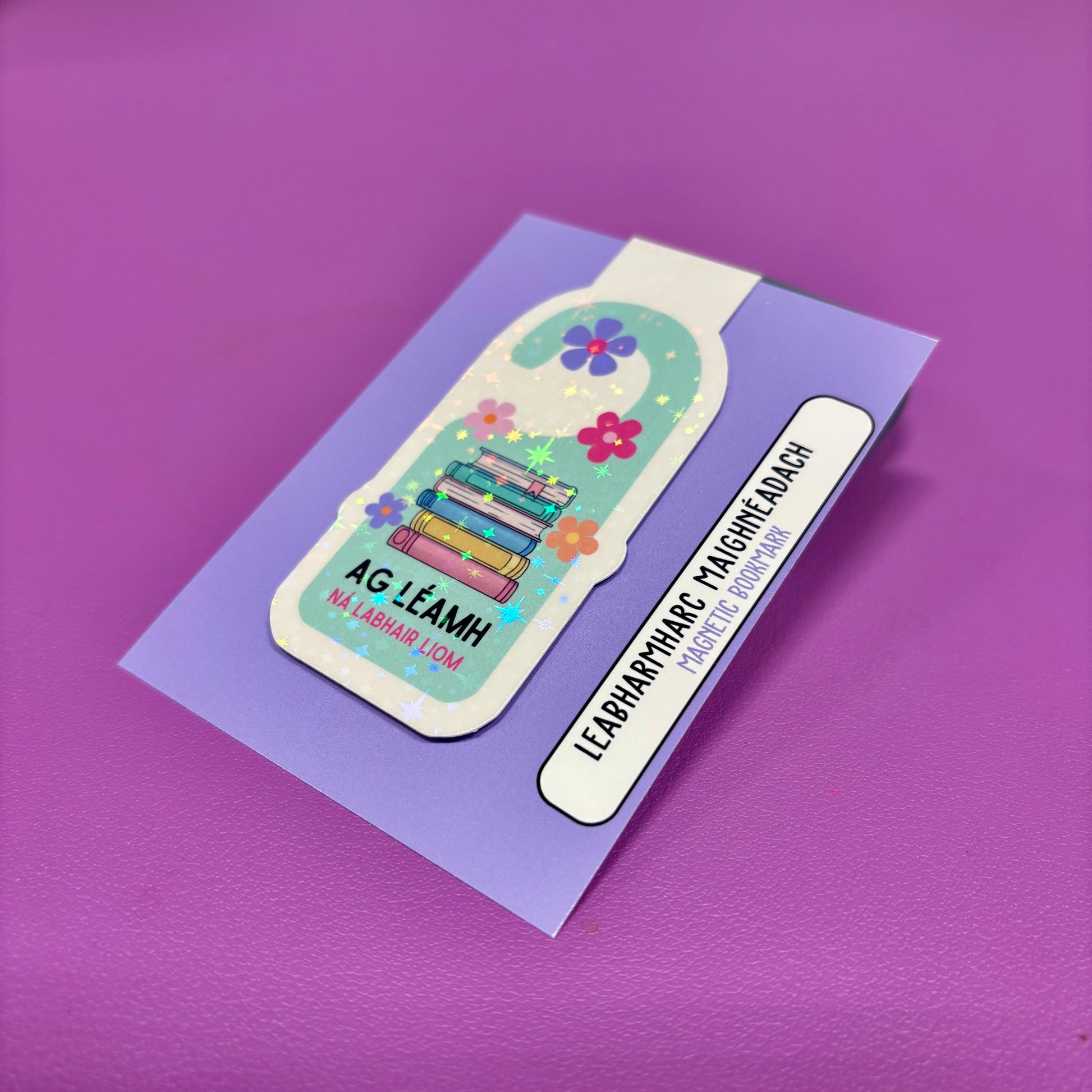 For those deep in a good book, this magnetic bookmark says it all! Shaped like a classic "Do Not Disturb" sign, it features the phrase "Ag léamh, ná labhair liom" (I'm reading, do not speak to me). Finished with a chunky glitter laminate, it adds a little sparkle while keeping your place securely with its strong magnets. Perfect for book lovers who like to read in peace!