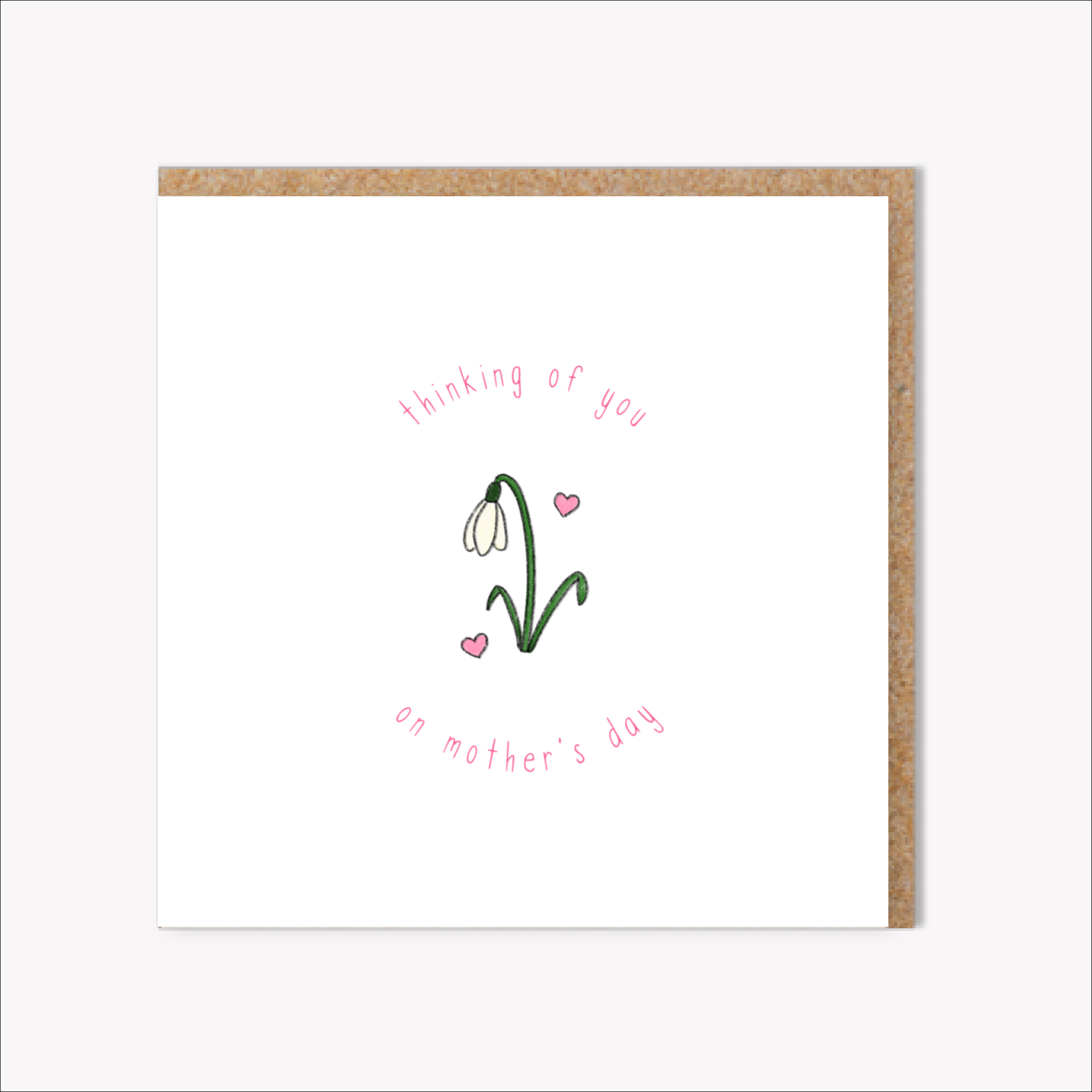 Featuring a beautiful snowdrop- a sympathy flower. But also the first flower to bloom at the end of winter - bringing hope and symbolising the end of the dark winter. The only flower to bloom in winter - showing strength and resilience. Beautiful white colour - pure and innocent.