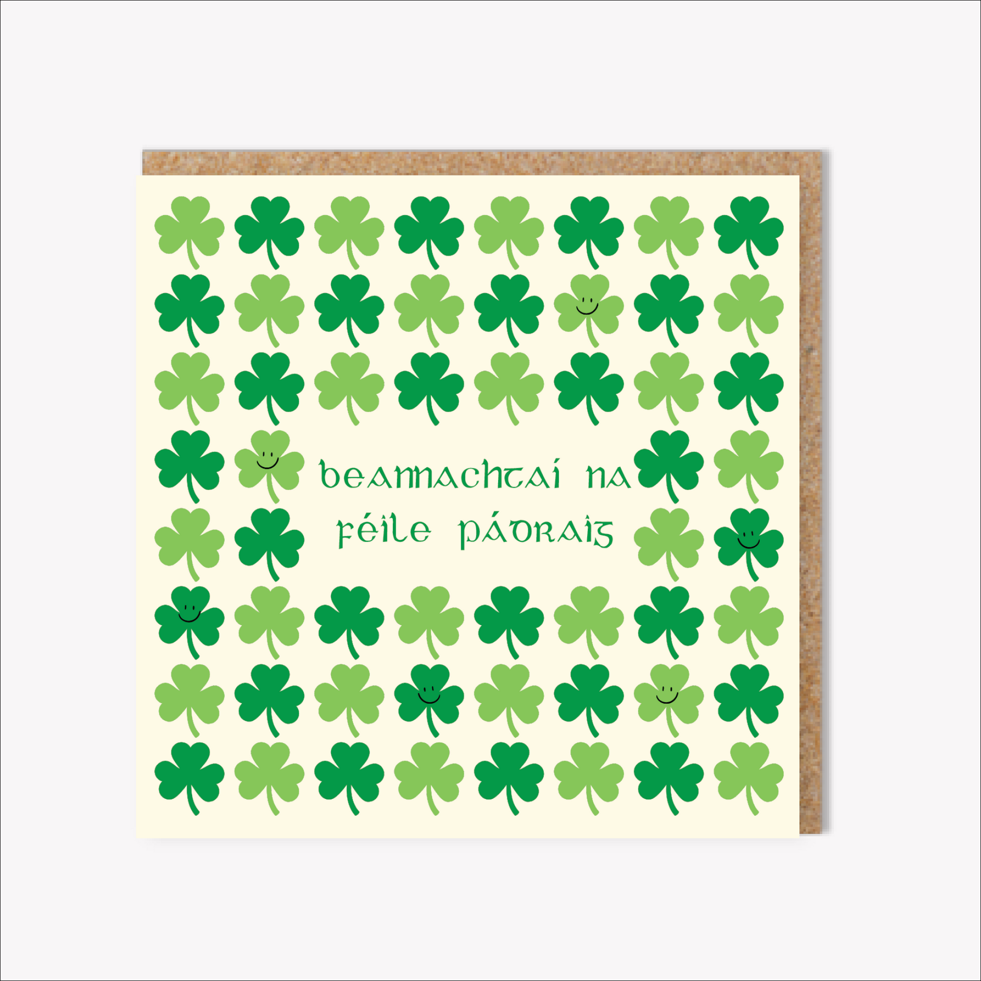 A card with cute green shamrocks to celebrate St Patrick's Day.