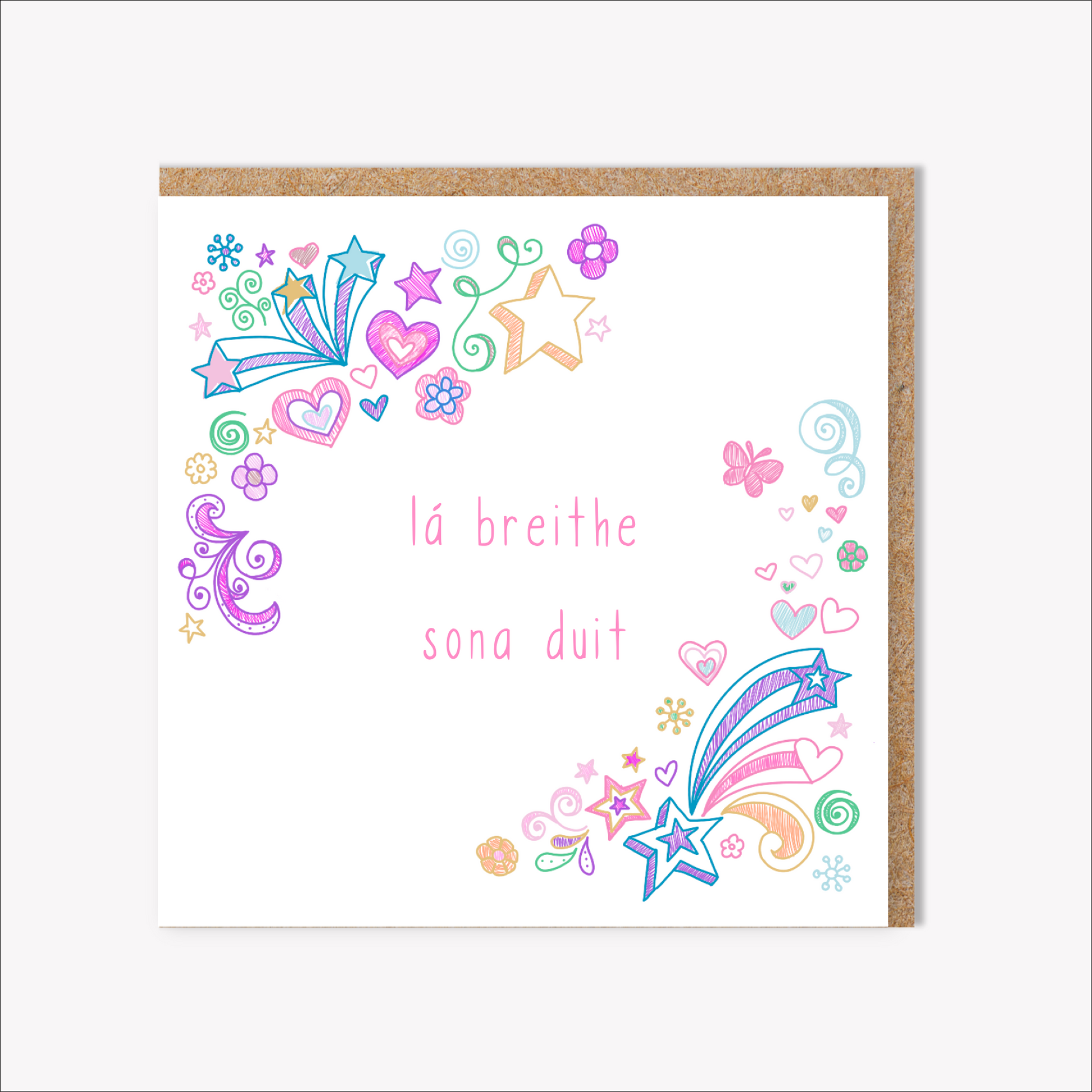 Designs are drawn digitally and printed on 350gsm white card. All cards are 148 x 148mm and are blank inside so you can add your own message. A luxury 120gsm Kraft envelope is supplied with every card.