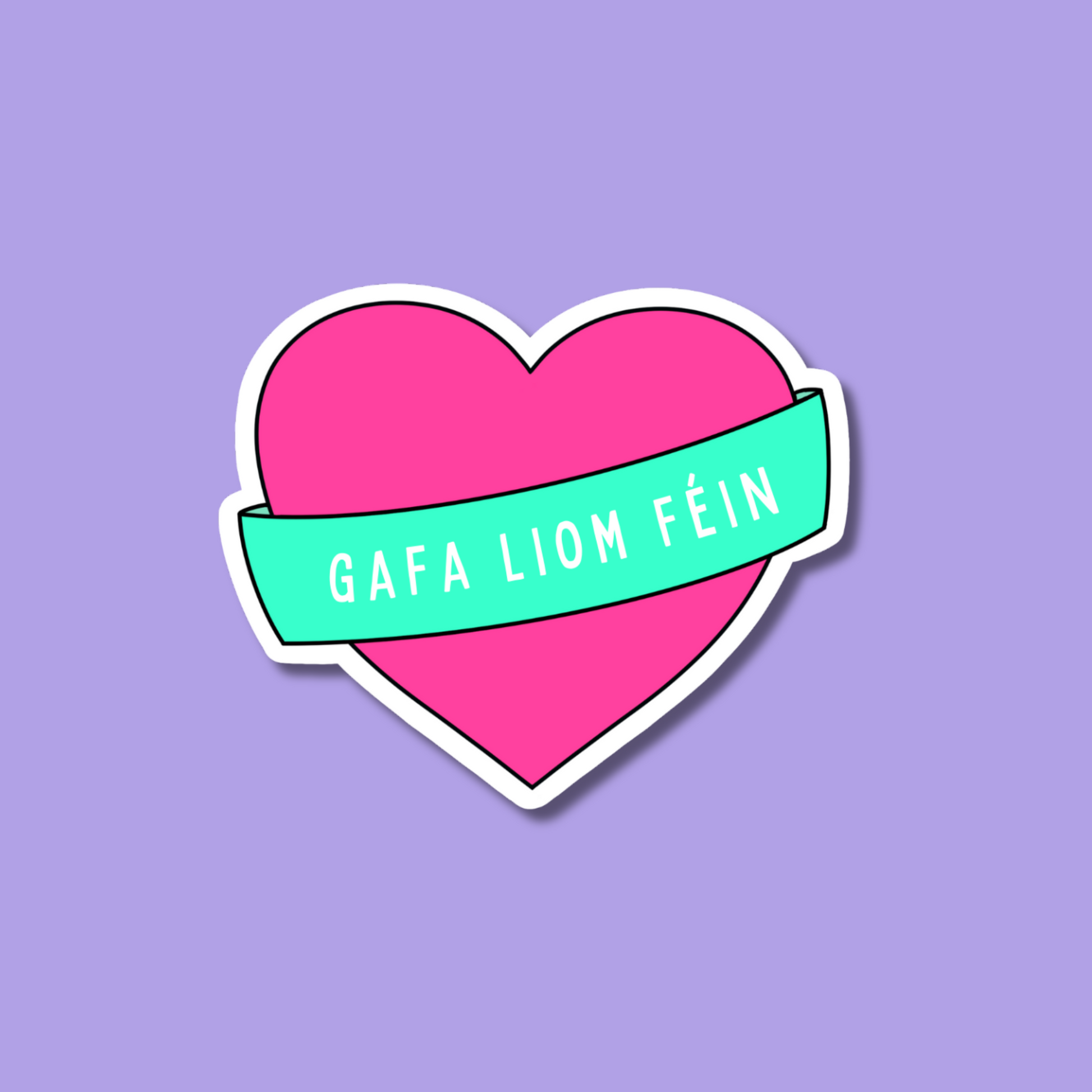 This bold and playful vinyl sticker features a large pink heart with the Irish phrase "Gafa Liom Féin" (Obsessed with Myself). A fun and cheeky way to celebrate self-love, confidence, and main character energy, it’s perfect for anyone who knows their worth!