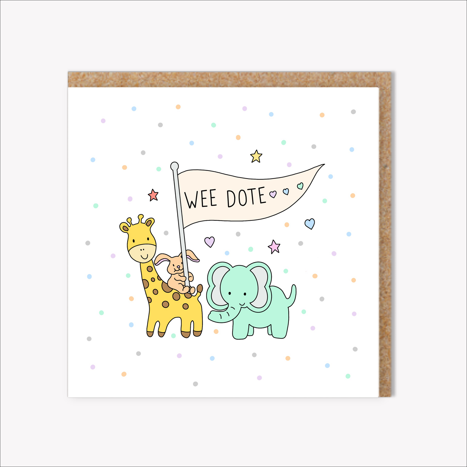 Designs are drawn digitally and printed on 350gsm white card. All cards are 148 x 148mm and are blank inside so you can add your own message. A luxury 120gsm Kraft envelope is supplied with every card.